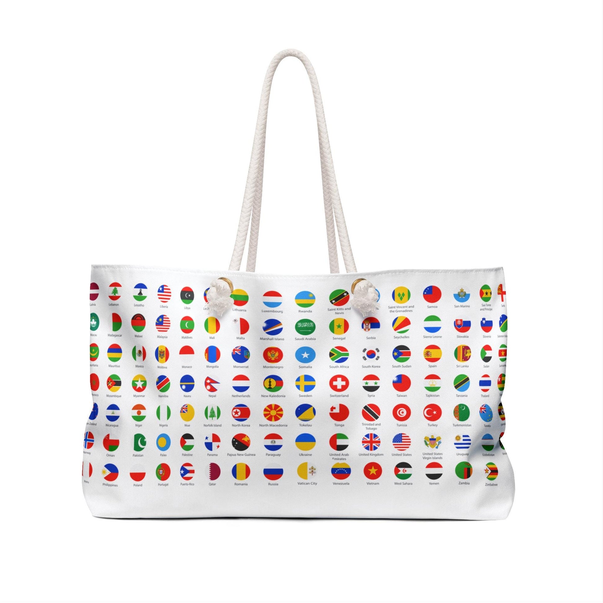WORLD FLAGS Tote Bag | Large Colorful Weekender for Travelers